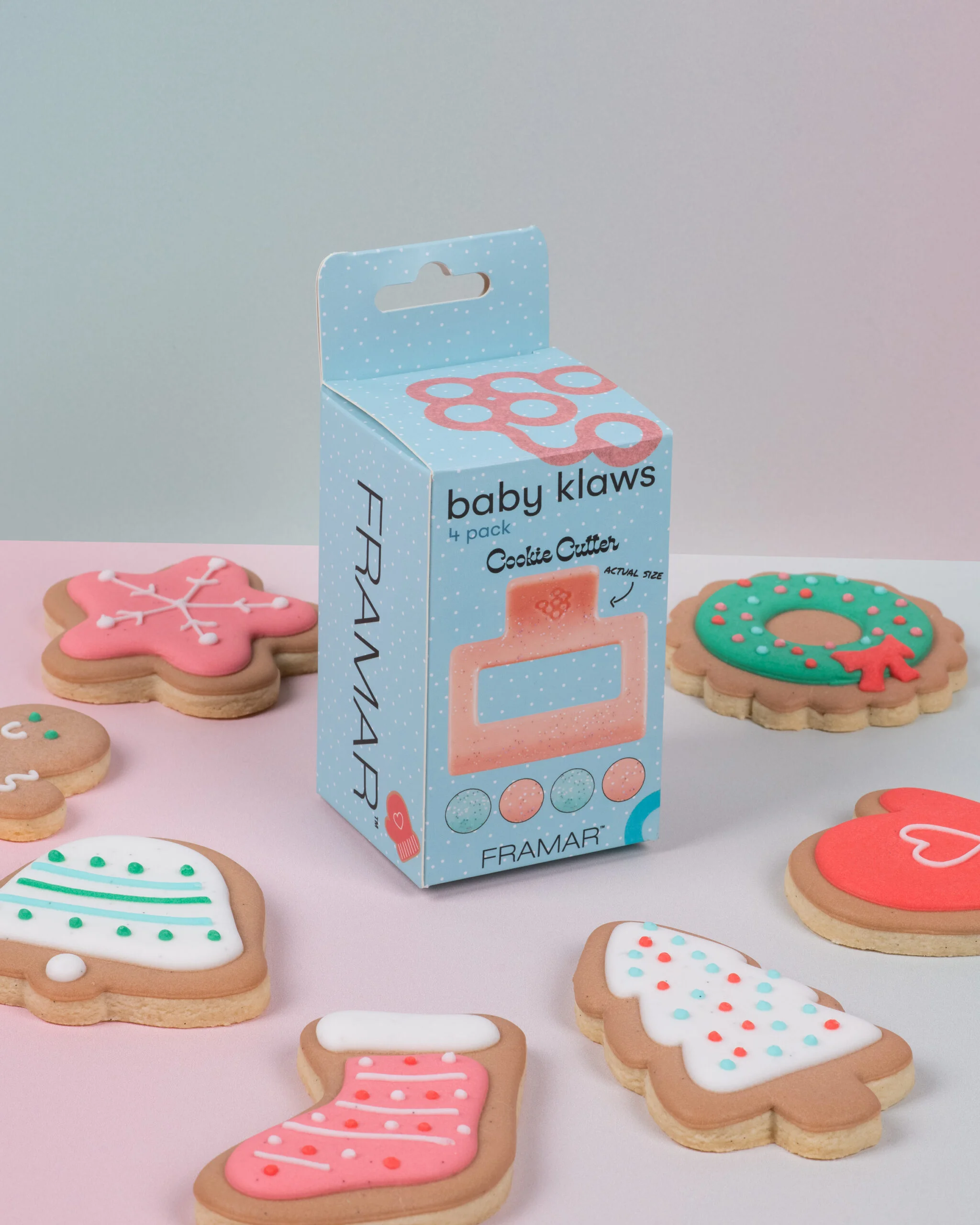 Bættu við smá jólagleði í hárgreiðsluna með Framar Baby Klaws Cookie Cutter – takmarkaðri hátíðarútgáfu af vinsælu hárklemmunum frá Framar. Þessar mini-klemmur eru hannaðar til að halda hárinu örugglega á sínum stað án þess að toga eða skilja eftir för.