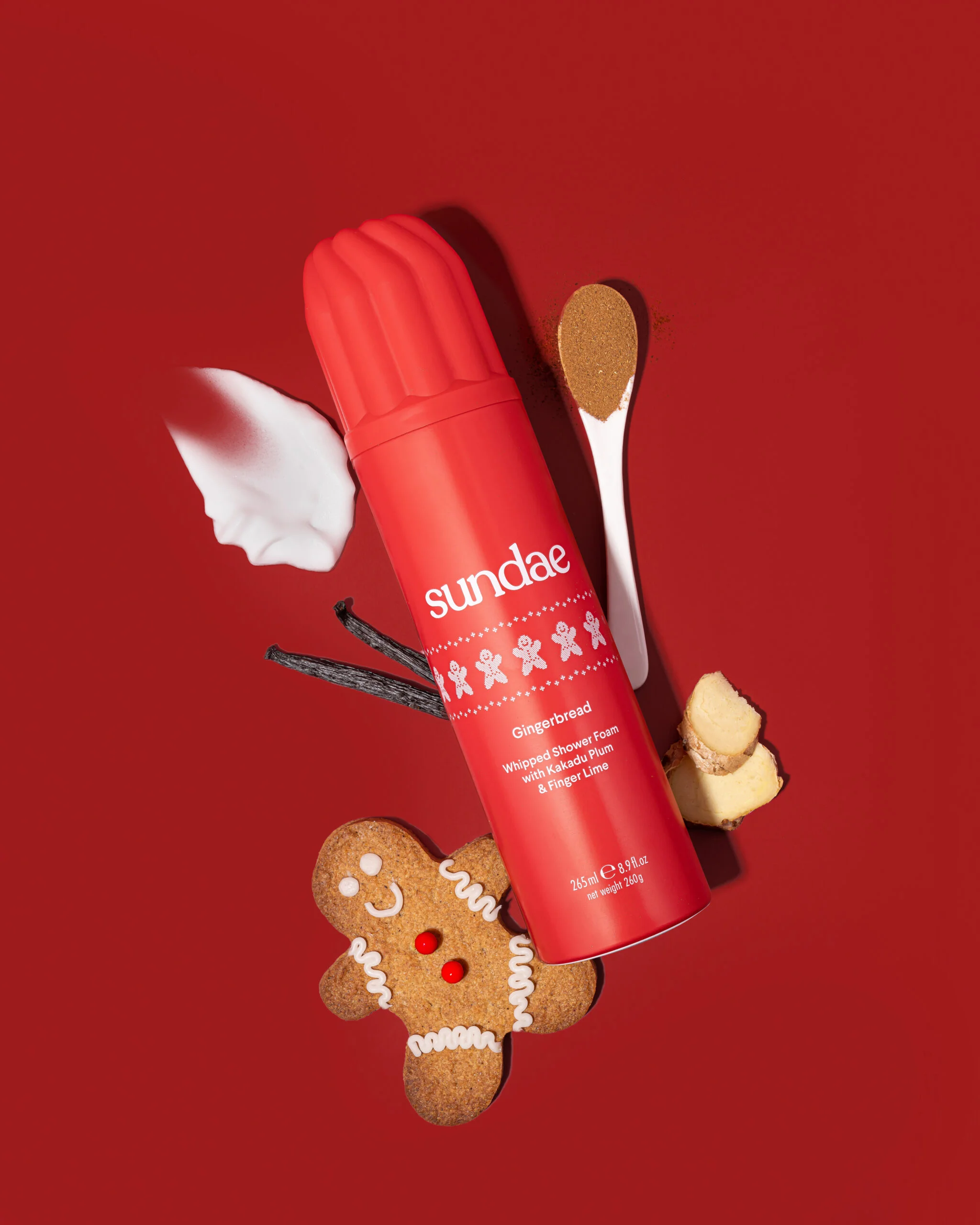 SUNDAE Gingerbread Foaming Body Wash umbreytir daglegu sturtunni í hátíðlegt dekur með ilm af nýbökuðum piparkökum.