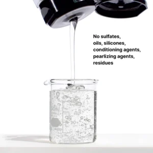 Ólíkt hefðbundnum „þykknandi“, „anti-frizz“ eða „conditioning“ sjampóum sem skilja eftir óæskileg innihaldsefni í hárið og hársvörðinn, tryggir sjampóið okkar að ekkert sitji eftir í hárinu eftir skolun.